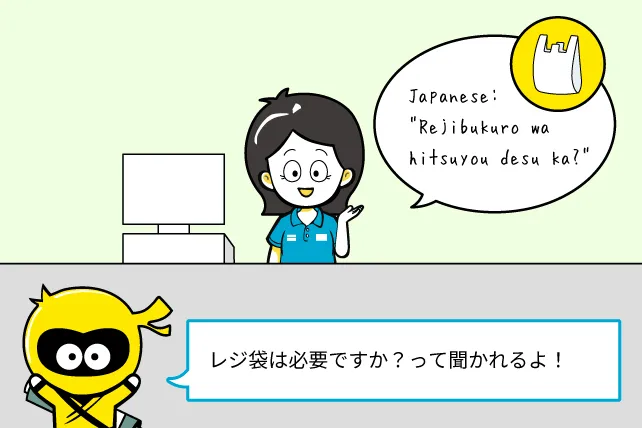 日本のコンビニではレジ袋が有料です。レジで会計時に「袋は必要ですか?」と聞かれるので、必要なら「はい」、不要なら「いりません」と答えましょう。エコバッグを持参する場合、自分で商品を袋に入れる必要があることも。店員が温かいものと冷たいものを分けてくれることが多いので、エコバッグでも分けて入れると便利です。日本では環境保護のためにレジ袋の使用を控える動きがあり、エコバッグを使うと環境にも優しく、買い物がスムーズになります。